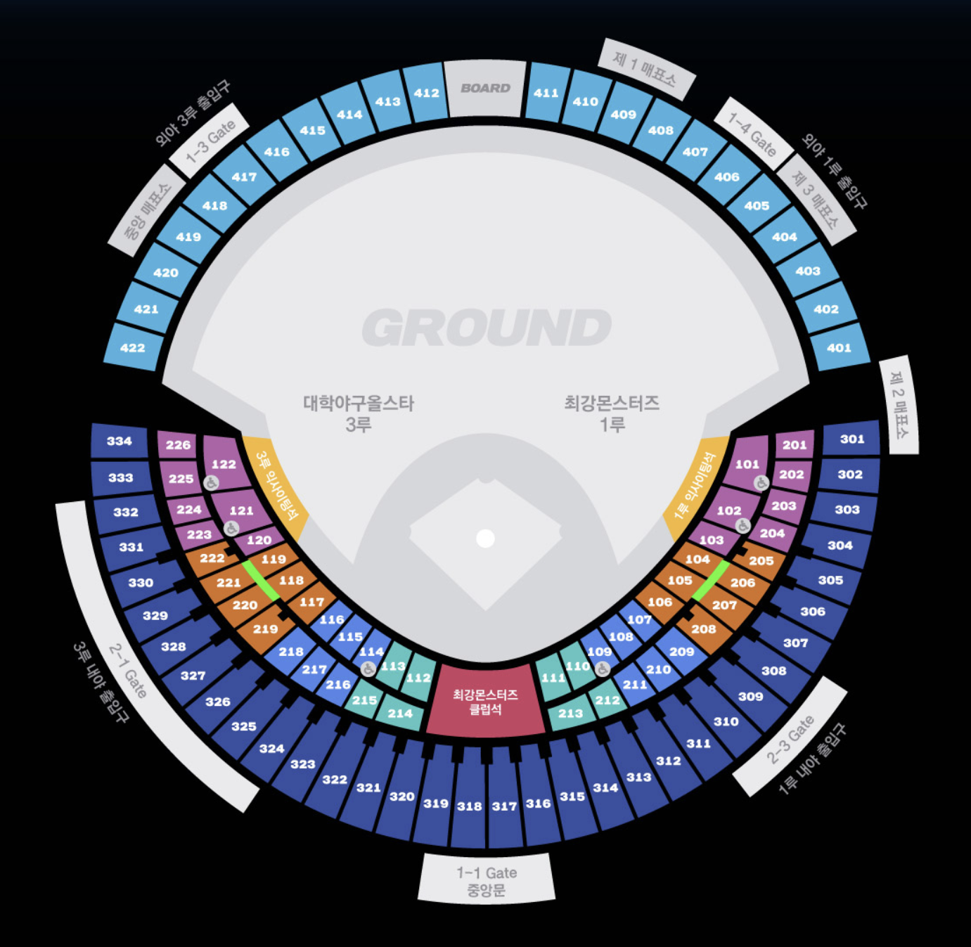 📌참고: 3연석 이상은 찾기 어렵고, 2연석 또는 단석의 성공 가능성이 높습니다. 특히 4층과 외야를 집중 공략하면 성공률이 올라갑니다.