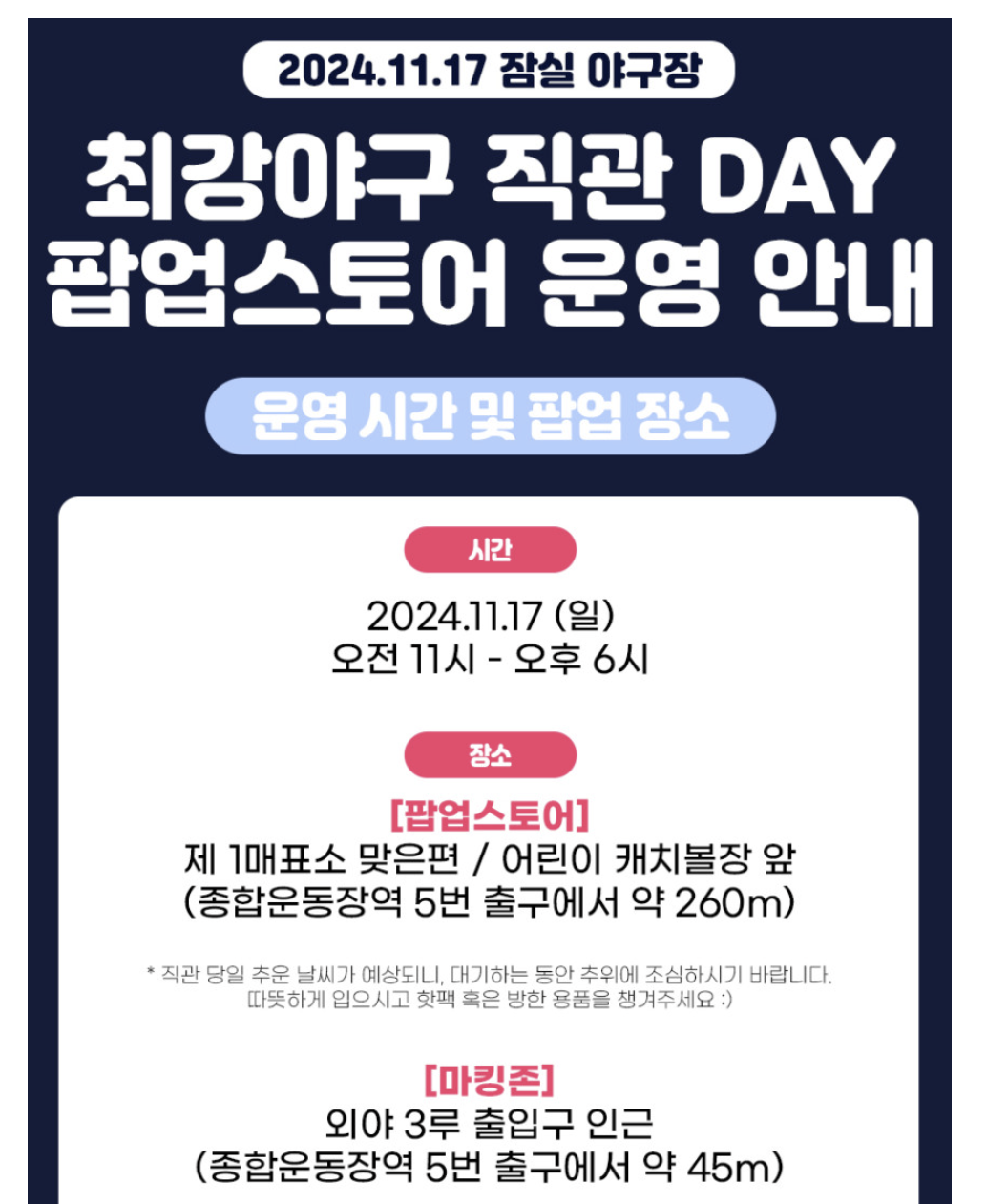 경기 당일 응원 도구 구매를 원하시는 분들은 길게 늘어설 수 있는 대기줄을 피하기 위해 미리 방문하시는 것을 추천드립니다.