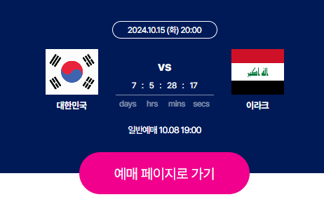 - 경기 선택 : '티켓 예매' 메뉴에서 한국과 이라크의 경기를 선택합니다.