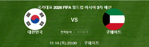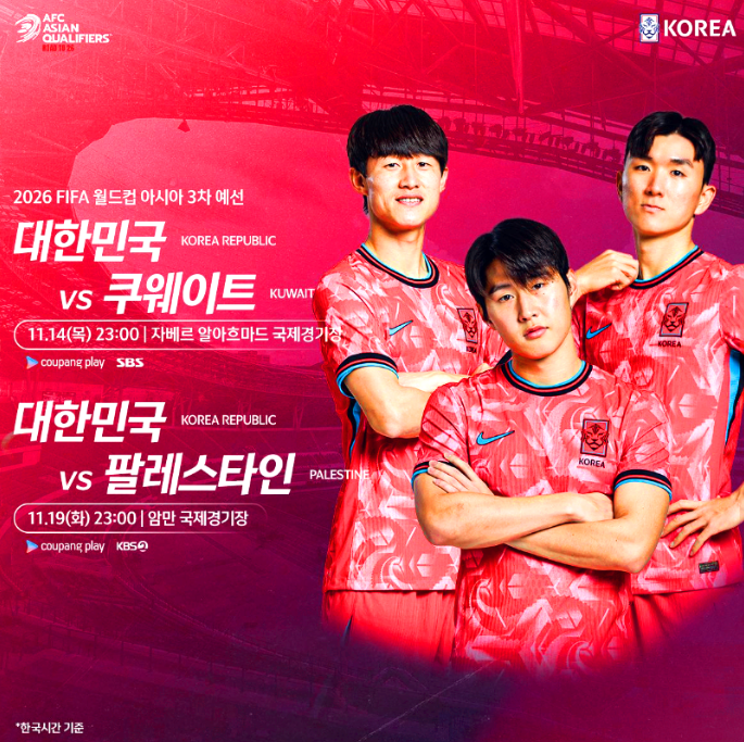 이번 북중미월드컵아시아3차 예선전에서 팔레스타인을 이기고 한국축구대표팀이 승리를 한다면 본선 진출을행 티켓에 한걸음더 다가설것 으로 예상됩니다. 축구 팬분들이라면 생중계 놓치지 마세요!